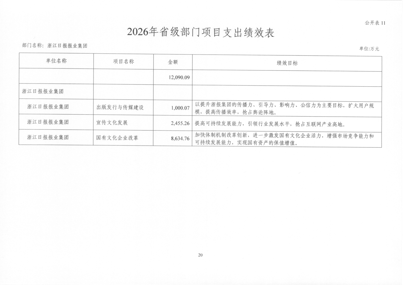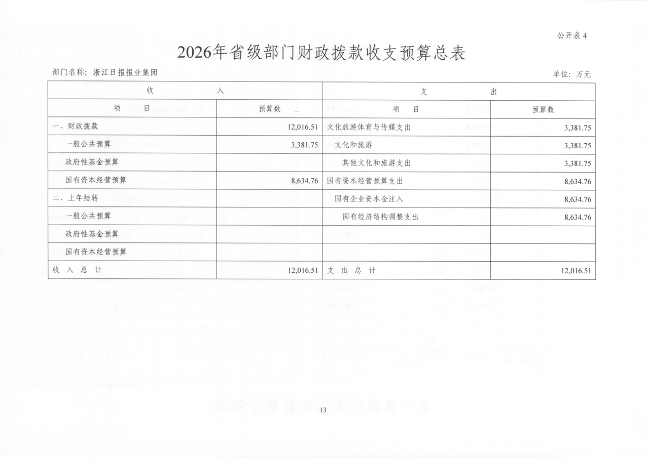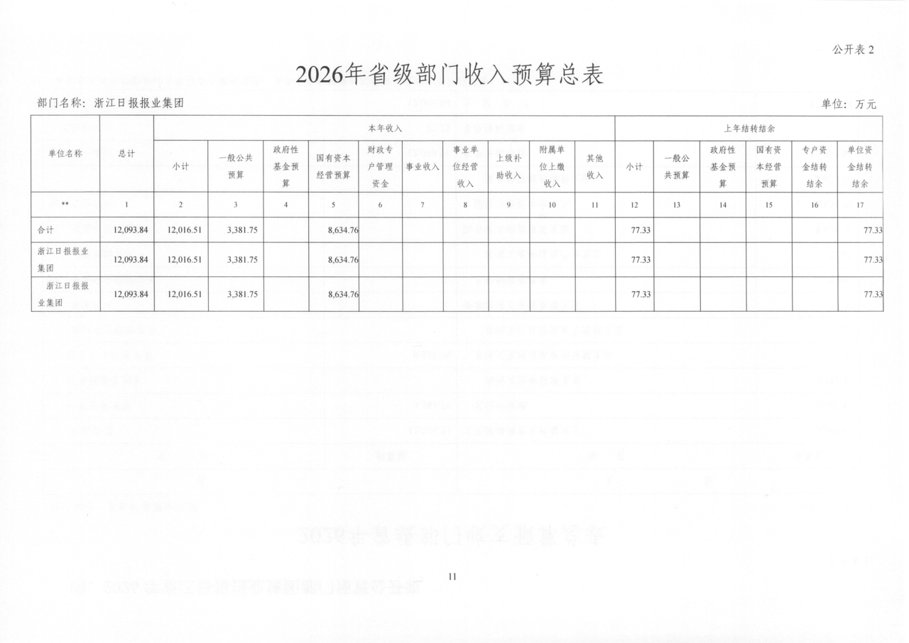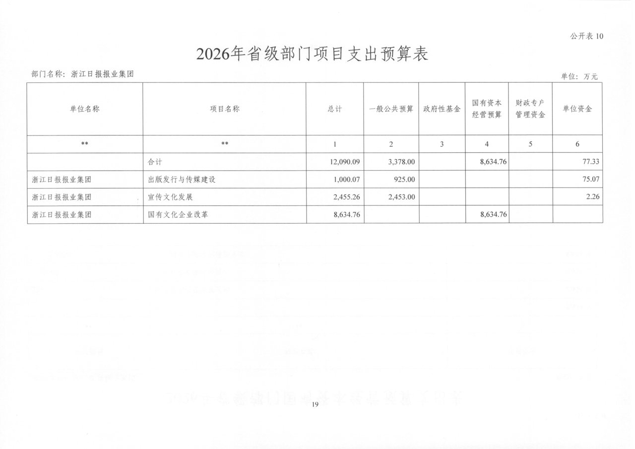 浙江日报报业集团2026年部门预算