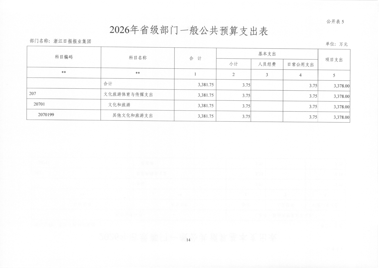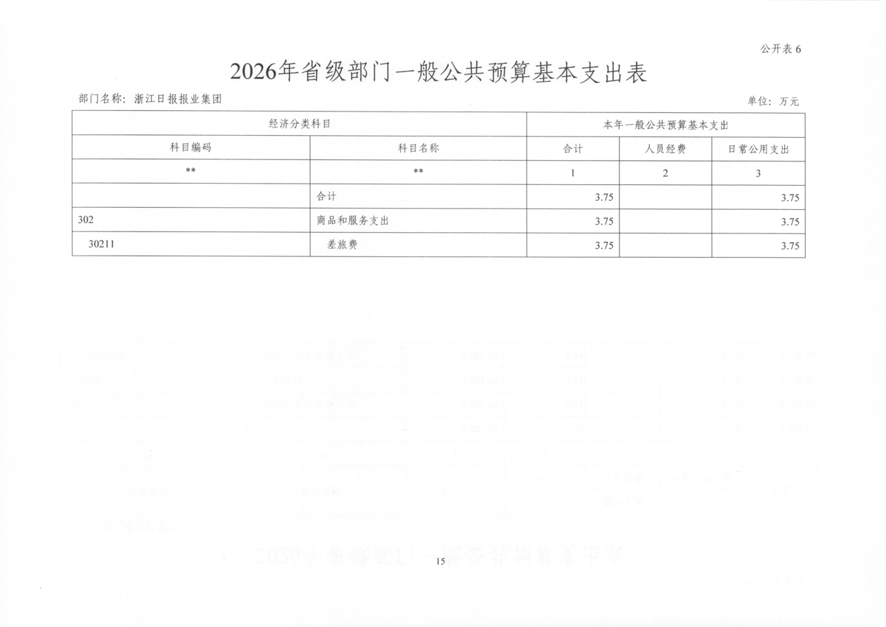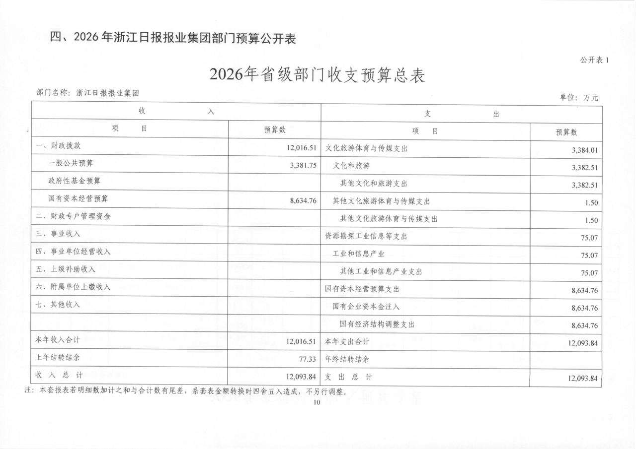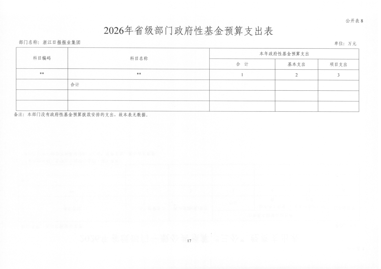 浙江日报报业集团2026年部门预算