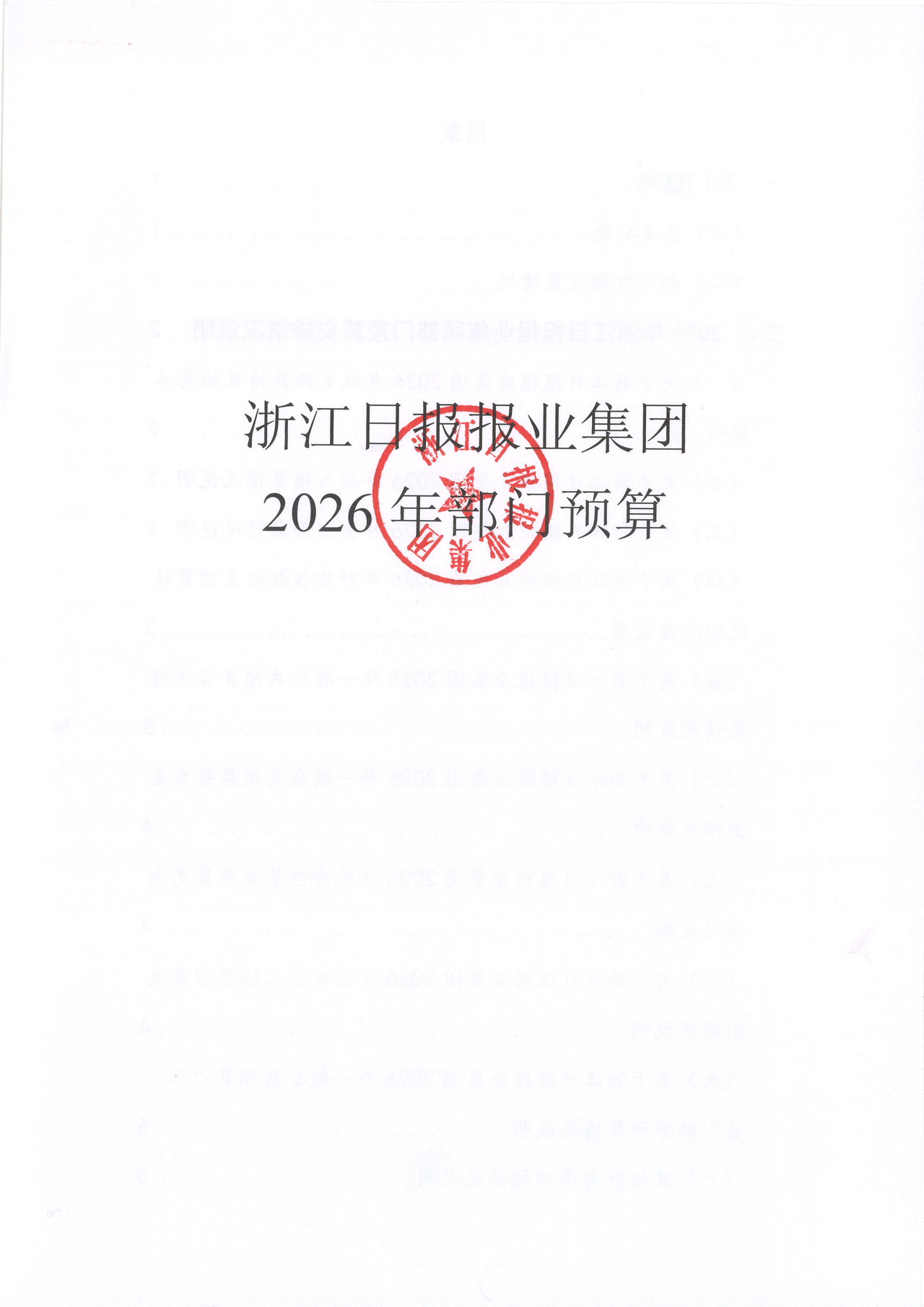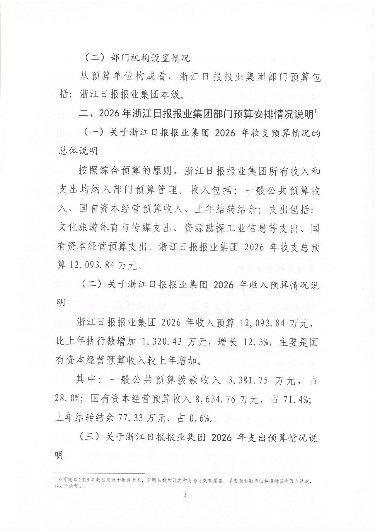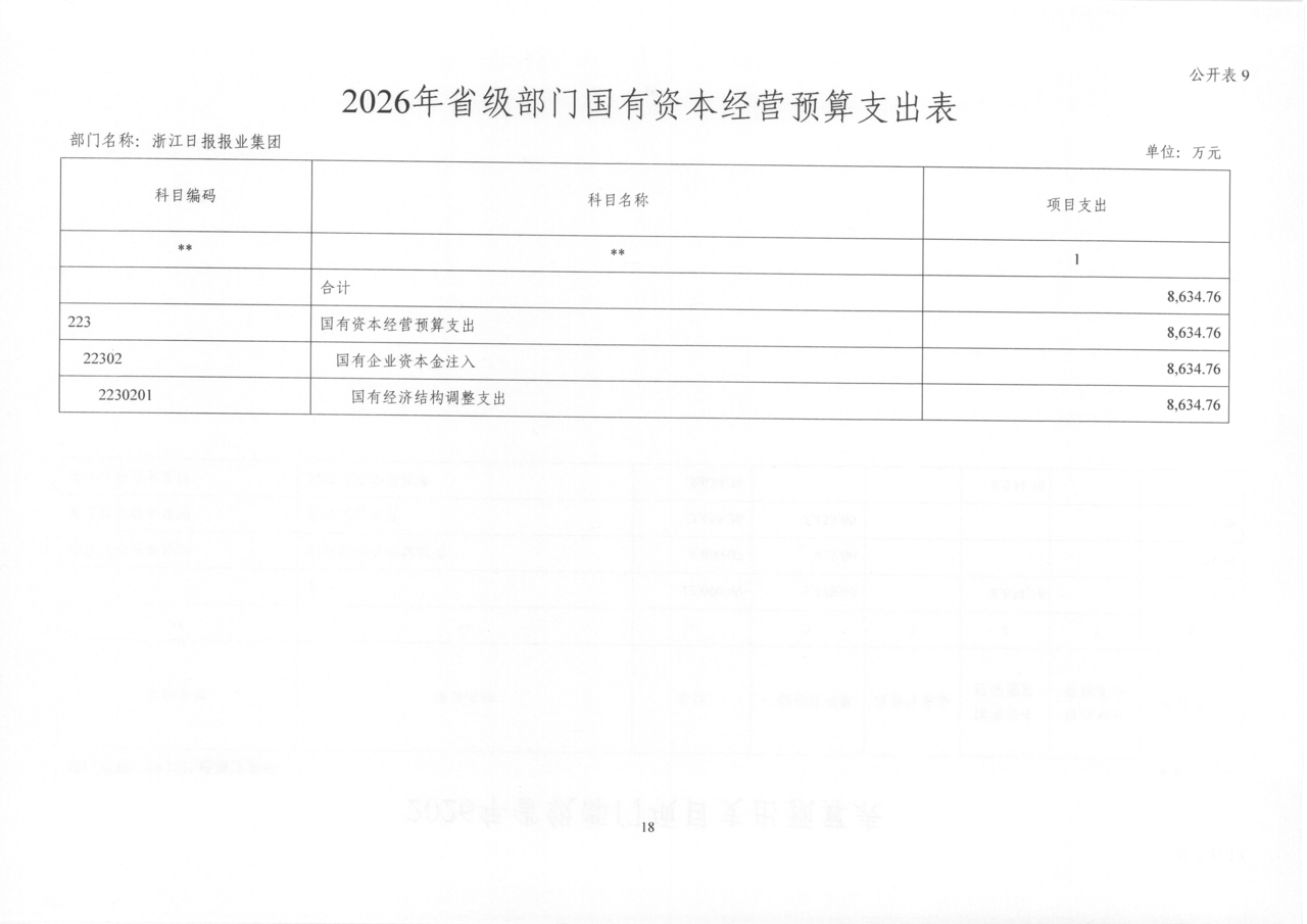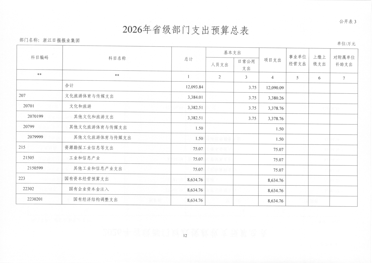 浙江日报报业集团2026年部门预算